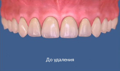 На рисунке видно, какие щели между зубов образуются уже через год, после удаления.